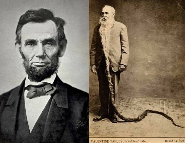 During Abraham Lincoln’s campaign for the presidency, a dyed-in-the-wool Democrat named Valentine Tapley from Pike County, Missouri, swore that he would never shave again if Abe were elected. Tapley kept his word and his chin whiskers went unshorn from November 1860 until he died in 1910, attaining a length of twelve feet six inches.