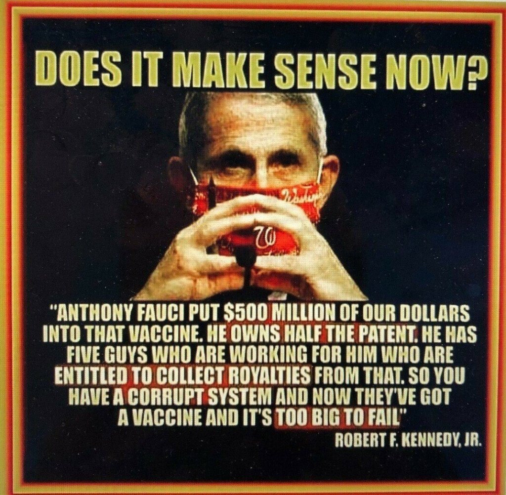 [85] attacks Anthony Fauci as a villain of sort but “conveniently” blames Fauci’s actions on large pharmaceutical money and not the