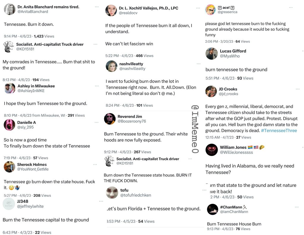 Unlike the January 6, 2021 US Capitol peaceful protest egged on with Deep State police, federal agents and ĺiberal operatives to cause havoc, the Tennessee crowd were actual organized activists.