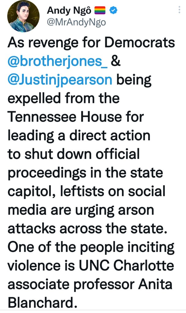 “Democrats who just arrested a former President and leading candidate of the opposition party now say “democracy” is threatened because the Tennessee GOP legislature voted to expel a Democrat leading an occupation of the state Capitol and a disruption of official proceedings,” noted Dinesh D’Souza.