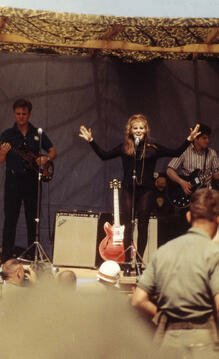 In March 1966, Margret went to remote parts of Vietnam with entertainers Chuck Day and Mickey Jones for her first USO tour. Not only in Vietnam, but they performed for servicemen throughout South-East Asia.