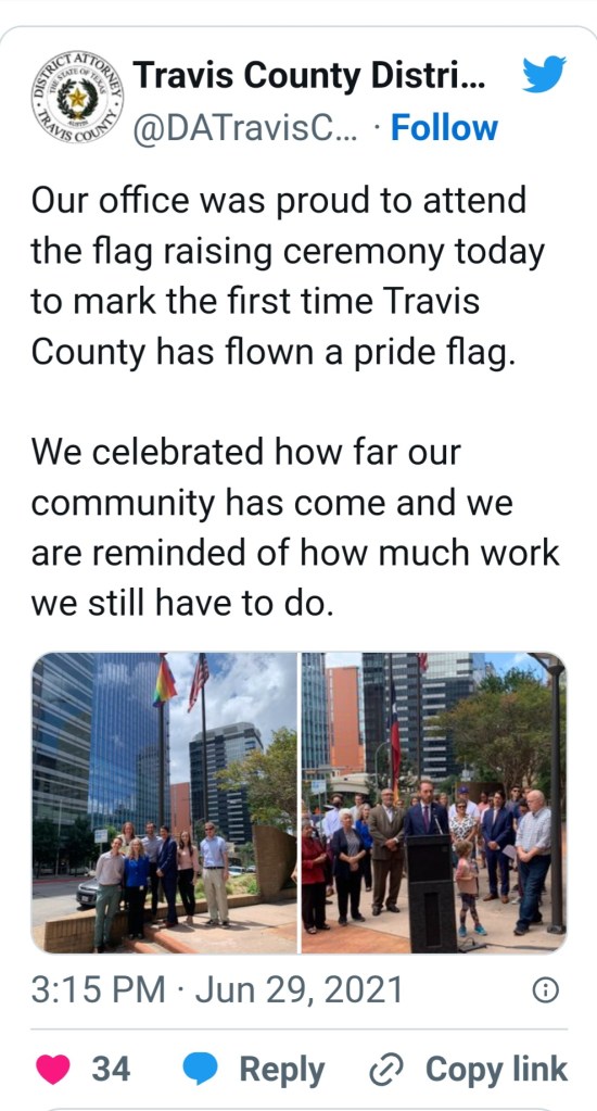 “The individual was then booked into the Travis County jail,” he noted. “Within hours, Travis County District Attorney Jose Garza dropped the charges.”