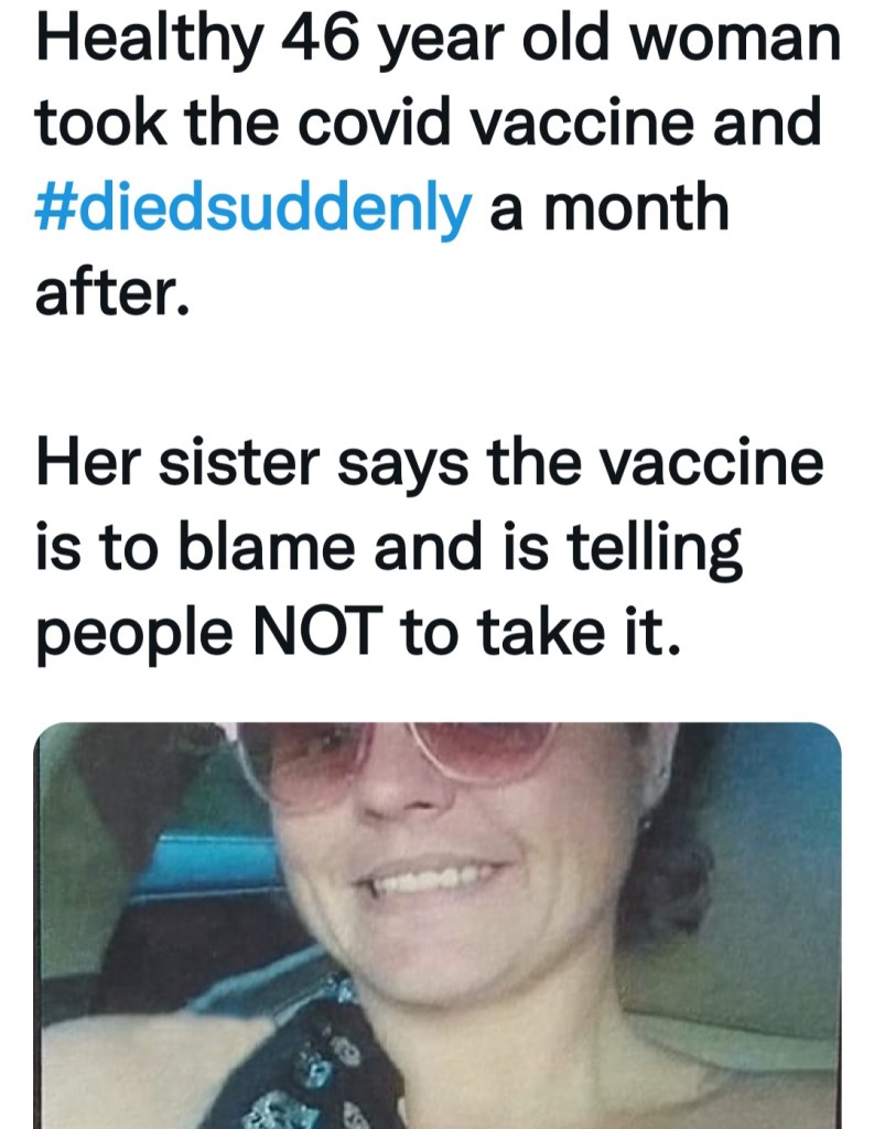 2. A woman that came home from getting the shot and dropped dead.