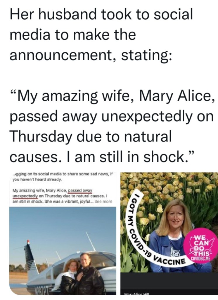 Not everyone that died unexpectedly died from the vaccine. So be circumspect when reading of yet another death. People Died Suddenly years ago as well. Yet, looking for evidence of Sudden Deaths in otherwise healthy people from 2000, or 2010, for example, I cannot find articles discussing the deaths that I can for the covid vaccine years.