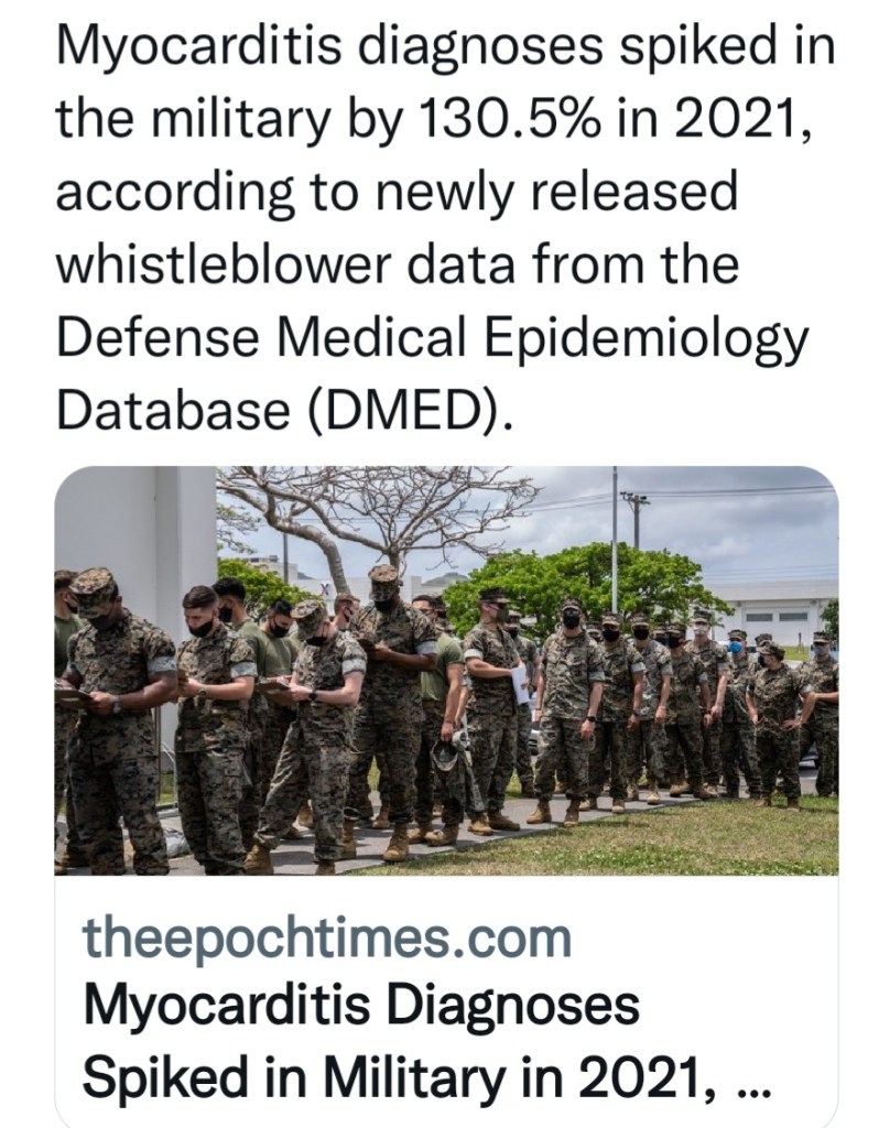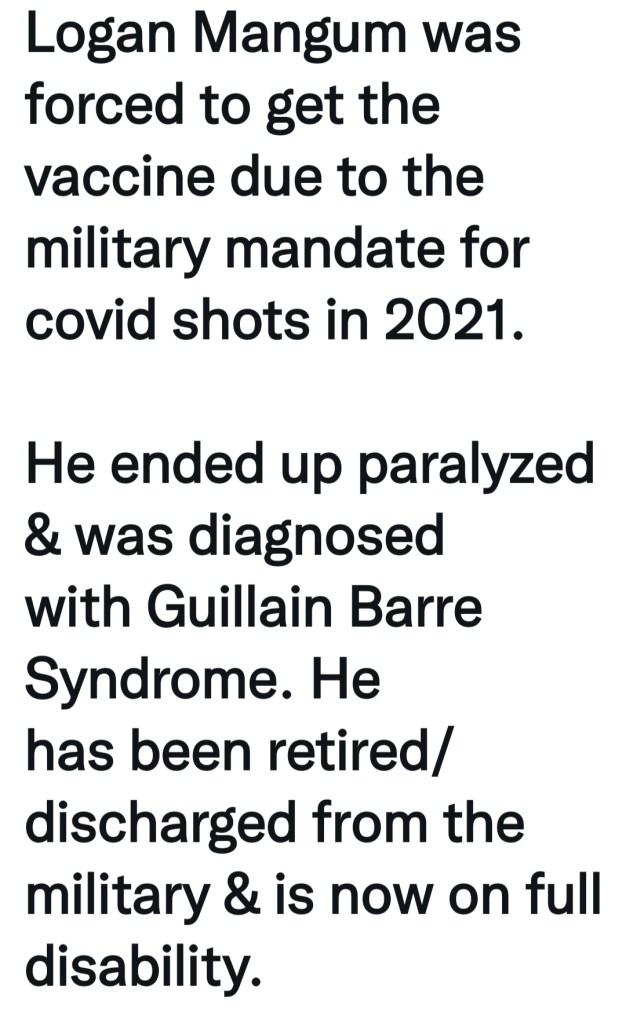 In my first Comment, I forgot to mention a lifelong benign arrhythmia and now afib. The vaccine has caused Inflammatory issues (I had Urticaria for years), Heart Rhythm Issues, Blindness, Seizures, and more, and he thinks I should be vaccinated. A politically conservative Specialist I see asked me why I was not vaccinated. I told him my medical history. He leaned forward and whispered “Don’t get vaccinated”, but it’s odd he had to whisper it, my cardiologist pushed it with reckless abandon.