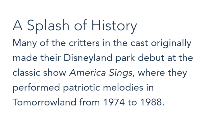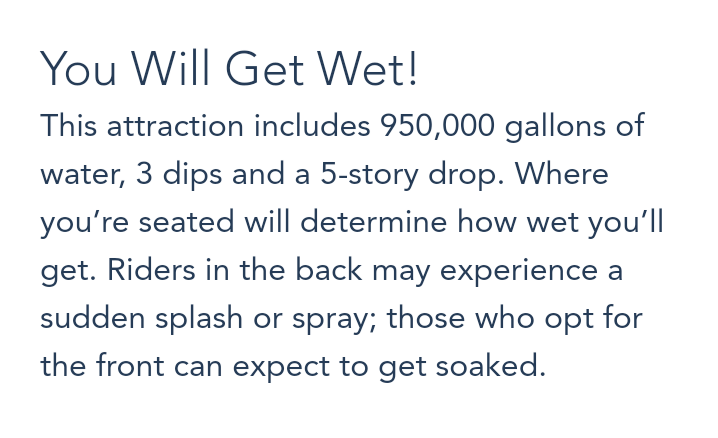 There were three drops but The Big Drop was 52.5 feet and slides down in 9.8 seconds. There were 103 total audio-animatronics on the ride.