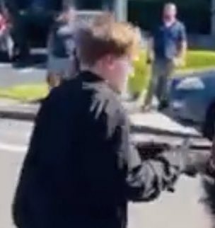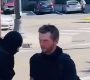 As the organized Patriot Front minions marched in unison donning matching uniforms and being extraordinarily masked, nearby observers (Proud Boys? Who knows?) went after them big time.