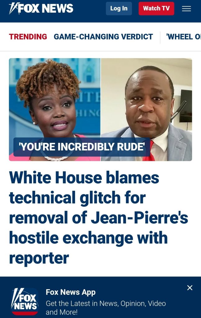 “The first one where they edited me out during my exchange with Press Secretary Karine Jean-Pierre and the second one where they restored it.”