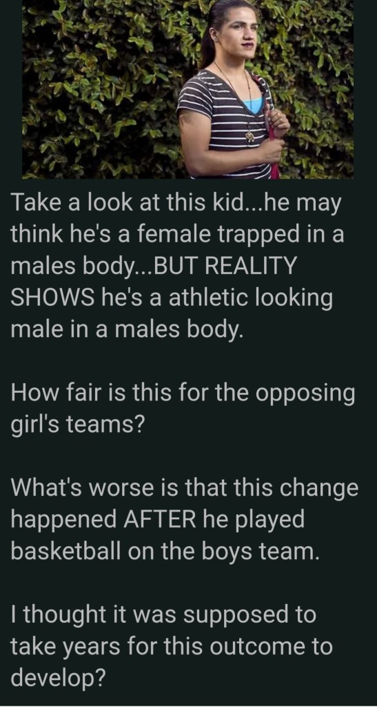 1. What is wrong with these males who want to play on women’s teams? Have they no shame? It is like a grown man that wants to play on a little league team or play on a soccer or football team for kids under 8. Until recently, someone would be too ashamed or fearful of well deserved ridicule to even try.