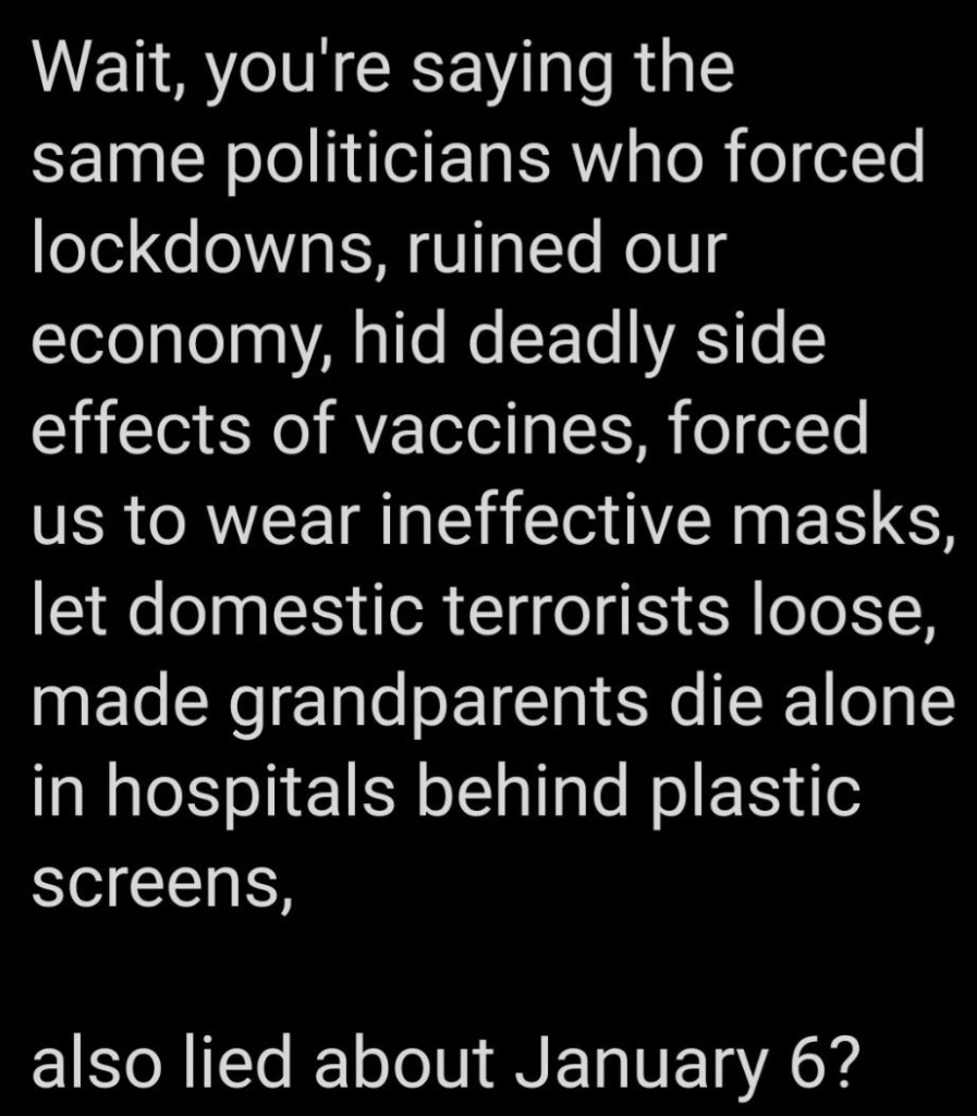 The propaganda and false narratives, we would learn, were for the benefit of Big Pharma, Bill Gates, the World Economic Forum, greedy lobbied politicians, China, and the cheating of a US presidential election.