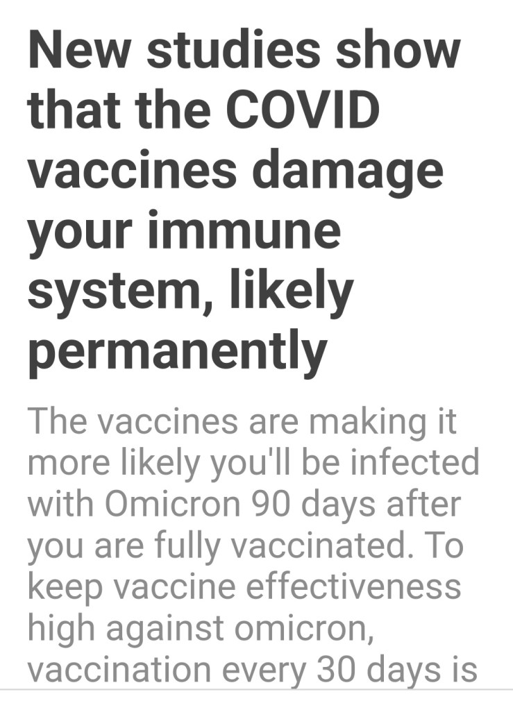 Worldwide studies had by then proven that in order to maintain vaccine effectiveness high against omicron, “vaccinations” every 30 days would be needed.