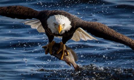 My wife and I witnessed this, a Young Eagle, an Adult Eagle, and a Blue Heron competing for the same fish.