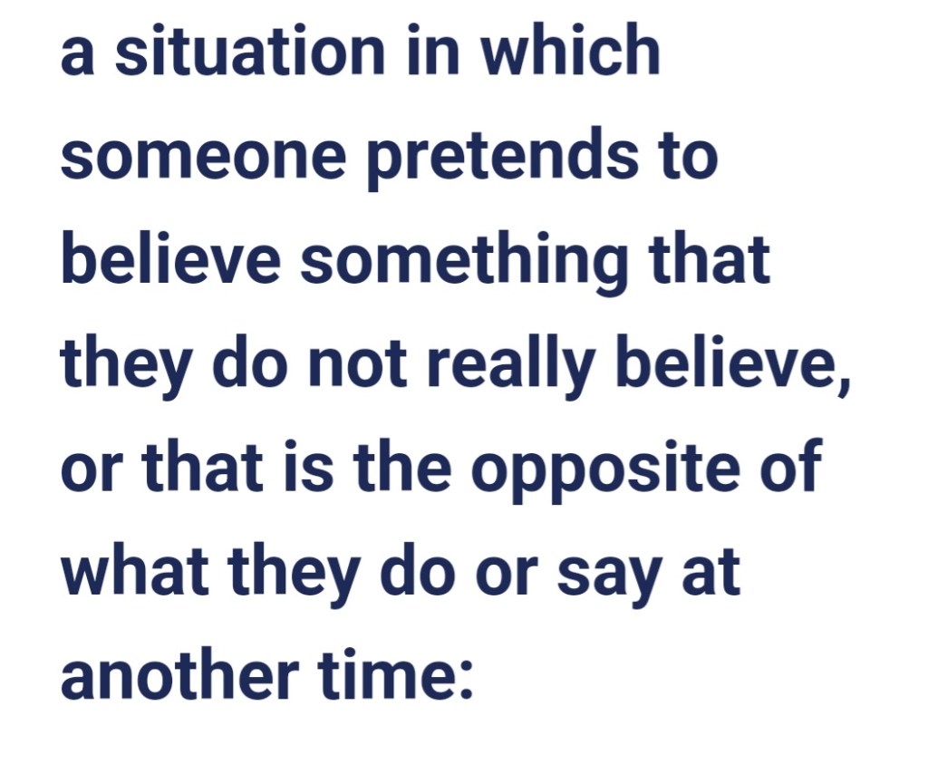 The Cambridge Dictionary defines HYPOCRISY as: