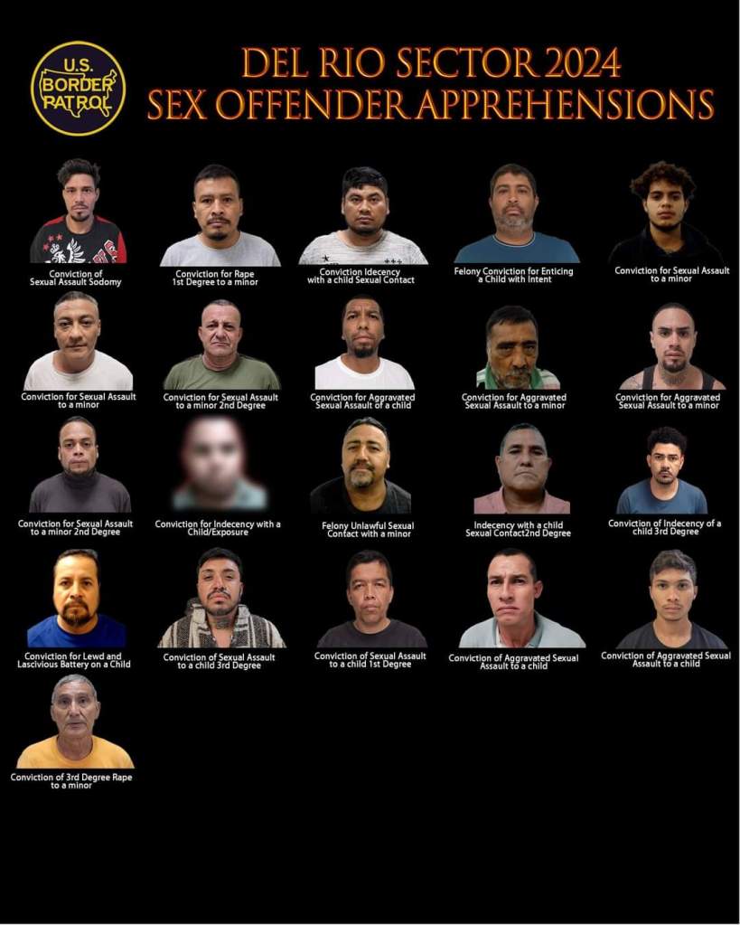 • In less than two months, Del Rio Sector agents have apprehended 23 convicted sex offenders attempting to enter the country illegally.