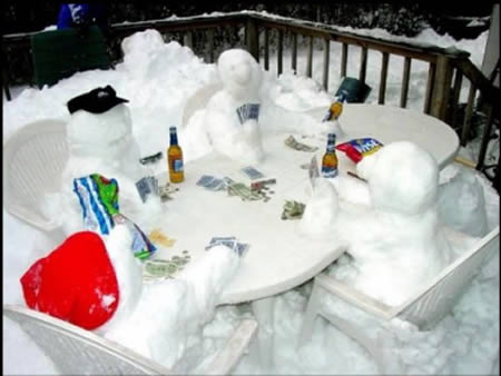 8:45 – A TV news crew showed up. I was asked if I knew the difference between snowmen and snowwomen. I replied “snowballs” and am now a sexist.
