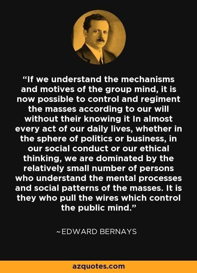 I invite you to read about Edward Bernay’s background and, especially, his book Propaganda. He consulted & worked in every Administration to do exactly what his gift was, BULLSH*T the population. He was at play until his death during the Clinton Administration.