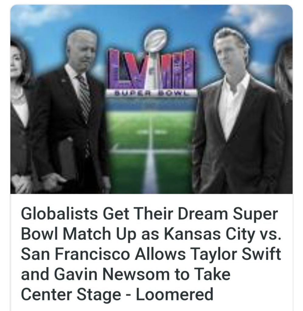 1. Good stuff, Jack. I think the NFL is using Swifter to gain an audience they haven’t had; young women under the age of 25. I also think Swifter is using the NFL to further her income and whatever cause she is working on. Biden and Regime is begging her to endorse, and if she does, her millions of adoring lemmings will vote for whoever she tells them to, no questions asked, and no conscience. The woman was indoctrinated early on, and not by her father. I’m serious here, I will not watch the Super Thang even though Ima rootin for Texas Mahomes. Nice pic of the little wench in a football costume.