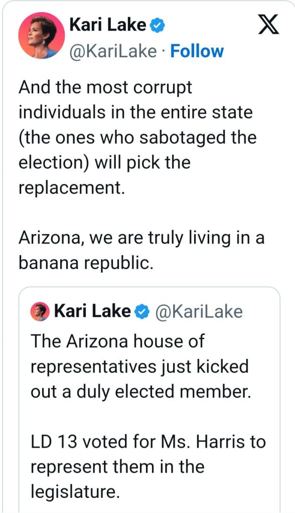 Among the officials she outed were Governor Katie Hobbs and Secretary of State Adrian Fontes.