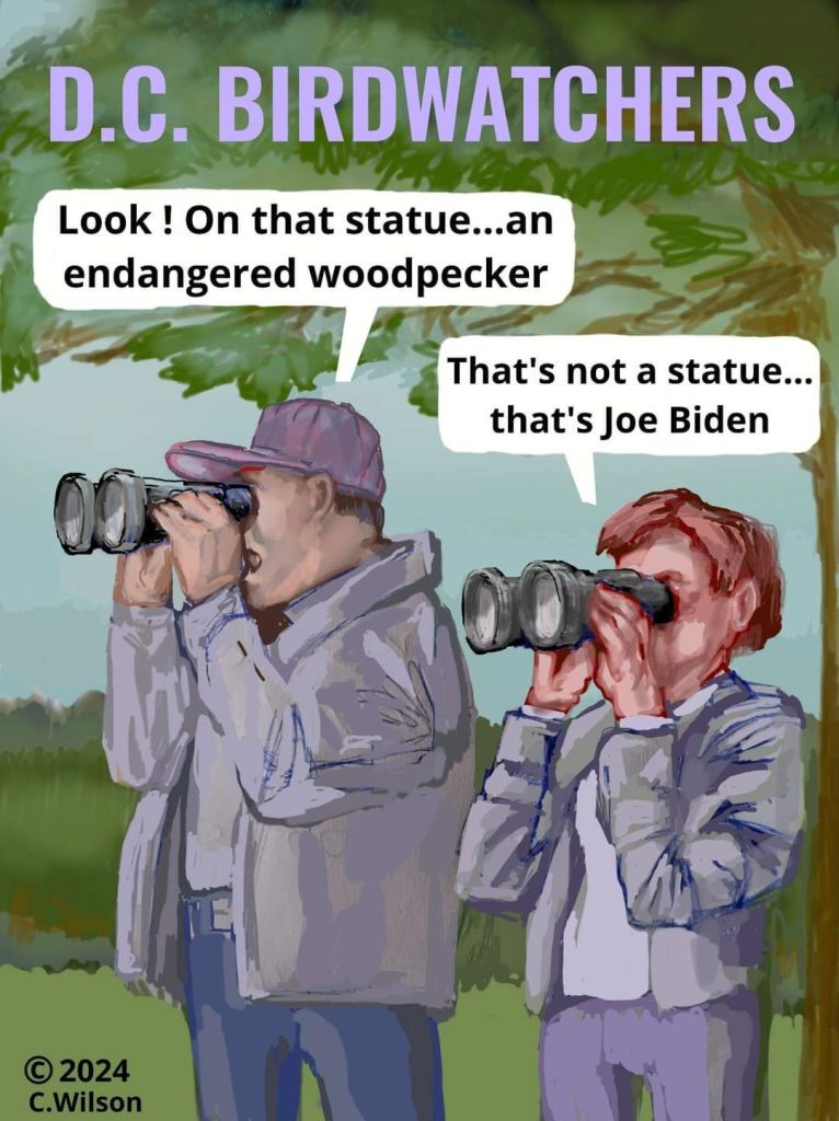 In this offering of his latest selections, he includes the talented artist Clifford Wilson’s most recent meme (seen for the first time here), “D.C Birdwatchers”: