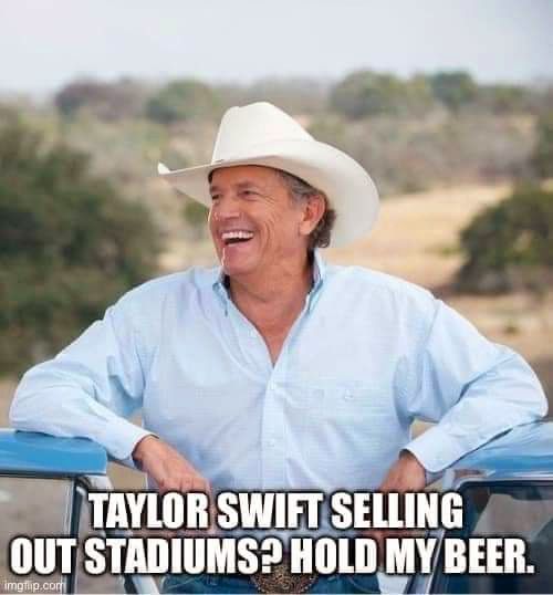 Wow-lots of cowboy hats! Too bad Taylor Swift wasn’t on the ticket for a duo with Strait for Strawn to enjoy. 🙂