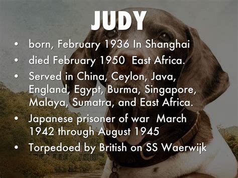 Judy raised morale in the POW camp, and also barked when poisonous snakes, crocodiles or even tigers approached the prisoners.