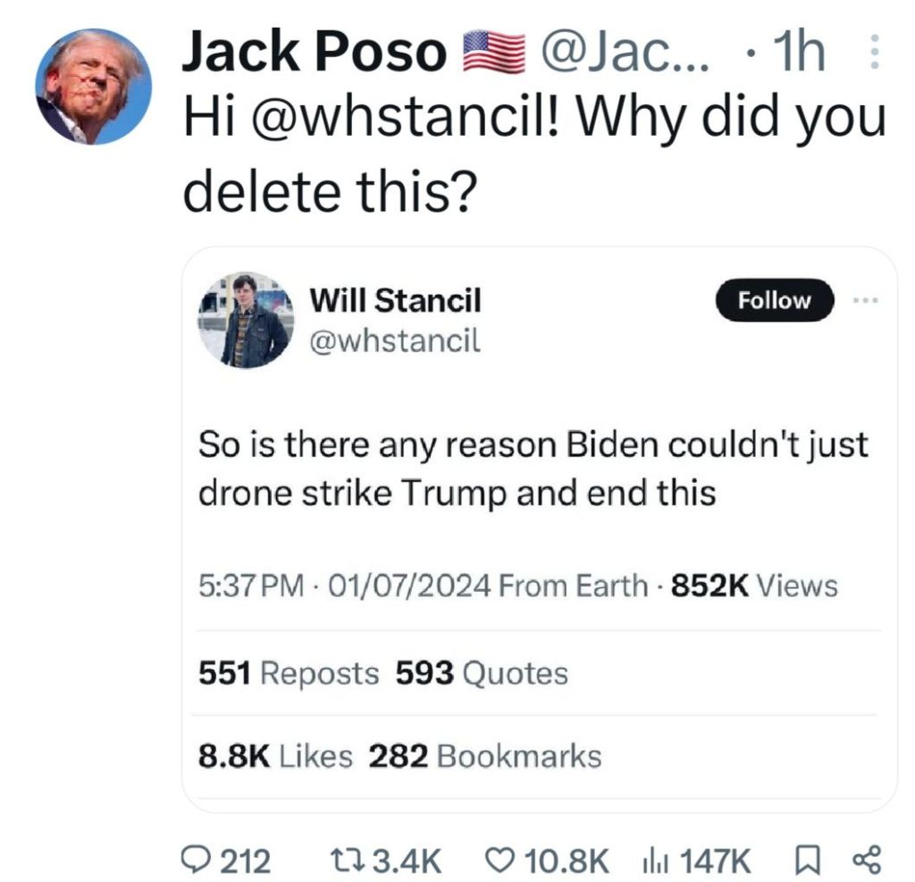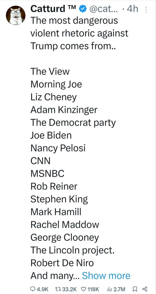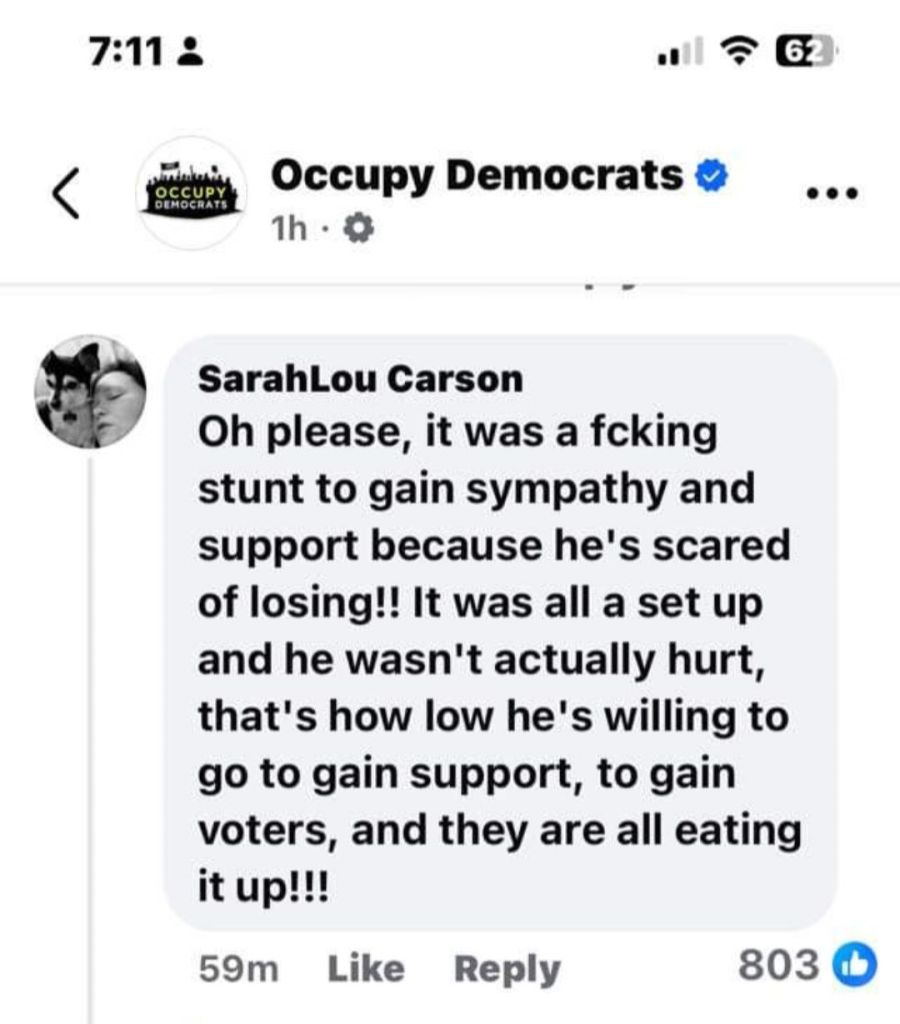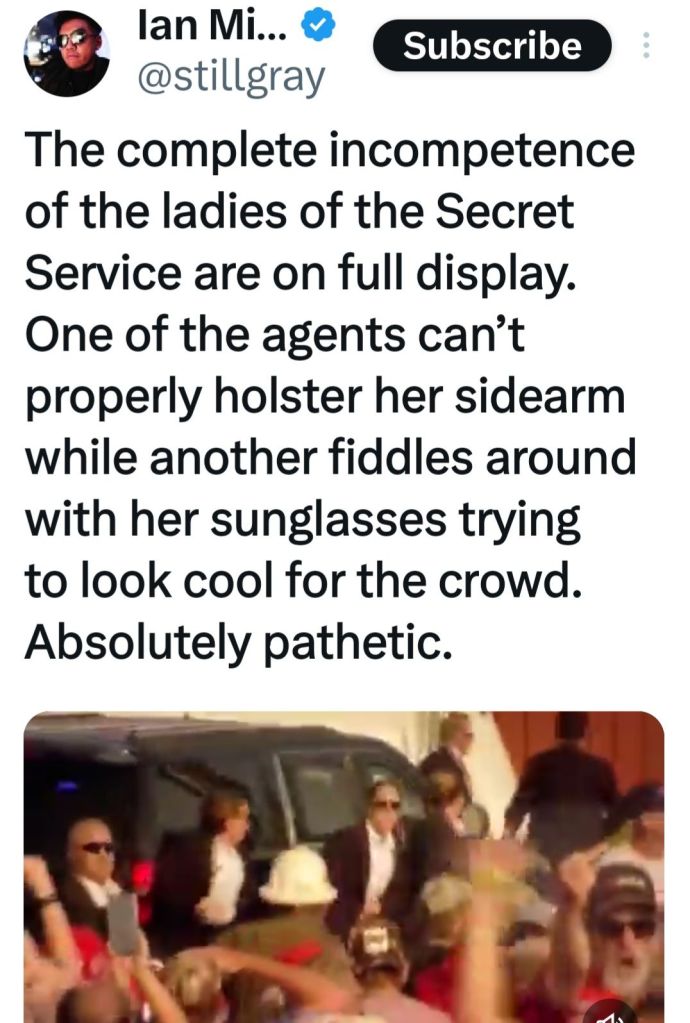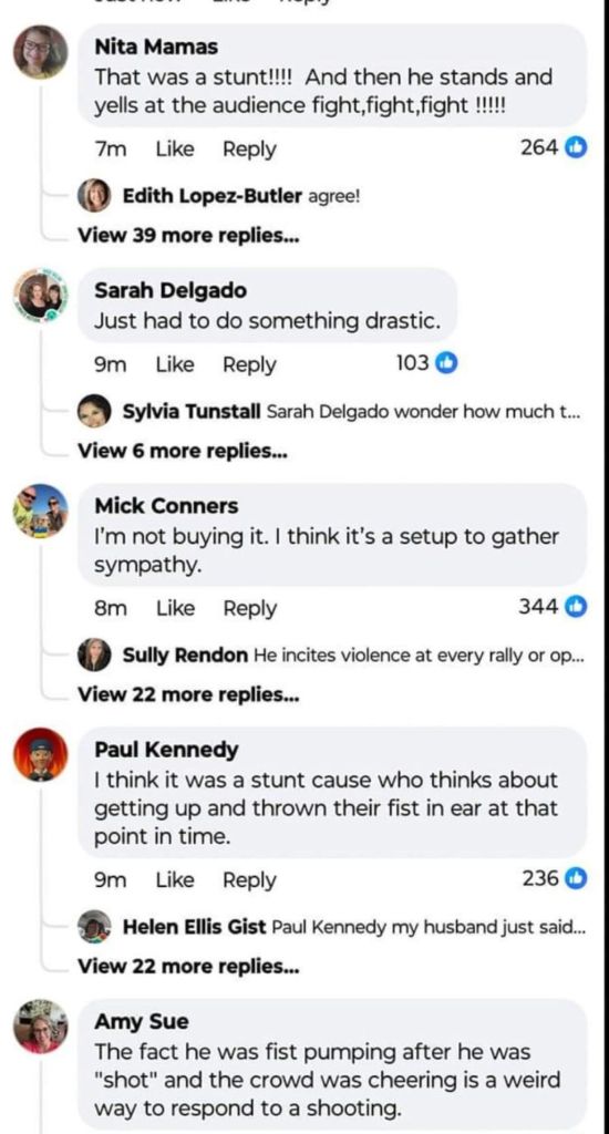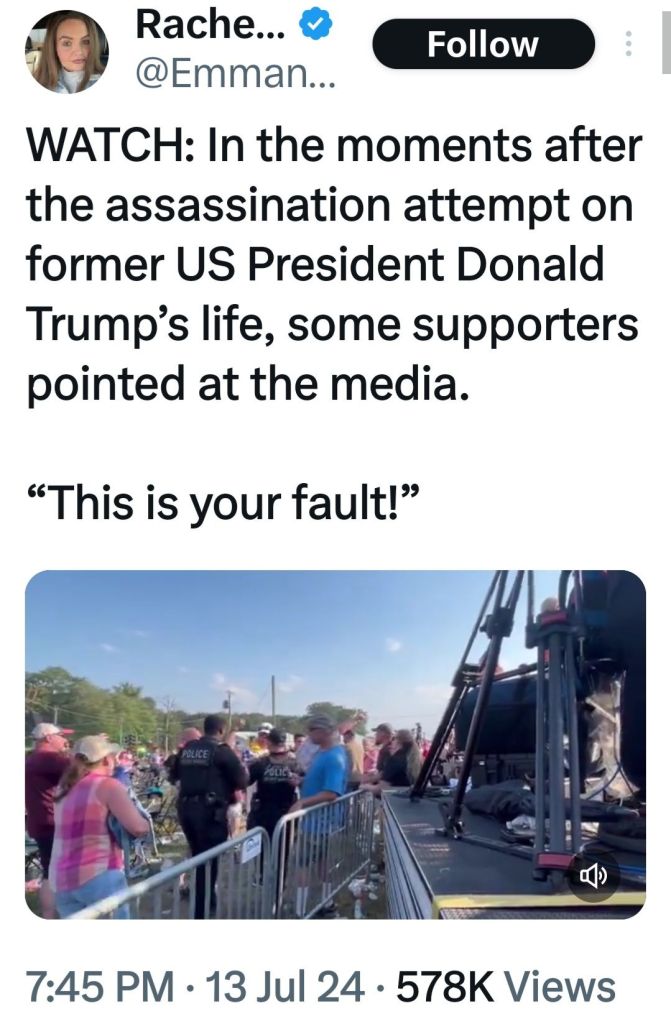 5. Couldn’t smear him. Couldn’t bankrupt him and couldn’t put him in jail. Biden has said he would do anything necessary to keep President Trump out of the White House. The most recent Biden calling for a bullseye to be put on President Trump. This was the Lefts last chance before the RNC to take him out. Obama and Soros are watching the DemocRats implode. They have admitted anything will be done to maintain power. The FBI, CIA, SS and local police failed miserably to protect President Trump. 130-150 yard straight in line of fire shot from the top of an adjacent building was not caught in a security prescreen? A man in camo carrying an AR rifle walks across a field, climbs up the side of a building, walks across the roof without being seen by SS? Not until he was firing at President Trump! And now it is reported a local cop saw the shooter but disengaged as the shooter pointed his rifle at him. This local cop gave no communication with any security to get President Trump off stage. I believe, in my opinion, what we saw yesterday was a failed political assassination attempt. By the grace of god President Trump is still with us! May god and faith comfort the family of the man killed and the injured. God Bless President Trump, God Bless the USA! MAGA TRUMP#47 🇺🇲🇺🇲