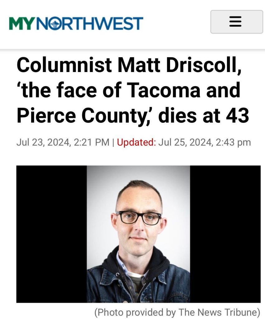 Journalist Matt Driscoll (43) has died suddenly after proudly getting vaccinated and promoting the shot through his reporting in Washington State.