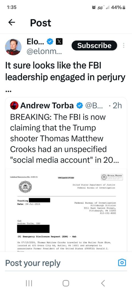 “The FBI is now claiming that the Trump shooter Thomas Matthew Crooks had an unspecified “social media account” in 2019/2020 (when he was 14/15 years old) that posted “anti-immigrant and anti-semitic” content.