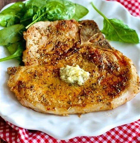 - Melt 2 tablespoons butter in a large skillet over medium heat. Cook chops in melted butter until browned and slightly pink in the center, about 7 to 10 minutes per side. An instant-read thermometer inserted into the center should read at least 145 degrees F (63 degrees C). Add remaining butter to the pan as needed so that about 3 tablespoons pan drippings remain in the pan when the chops are finished cooking. Transfer pork chops to a plate and return skillet to medium-high heat.