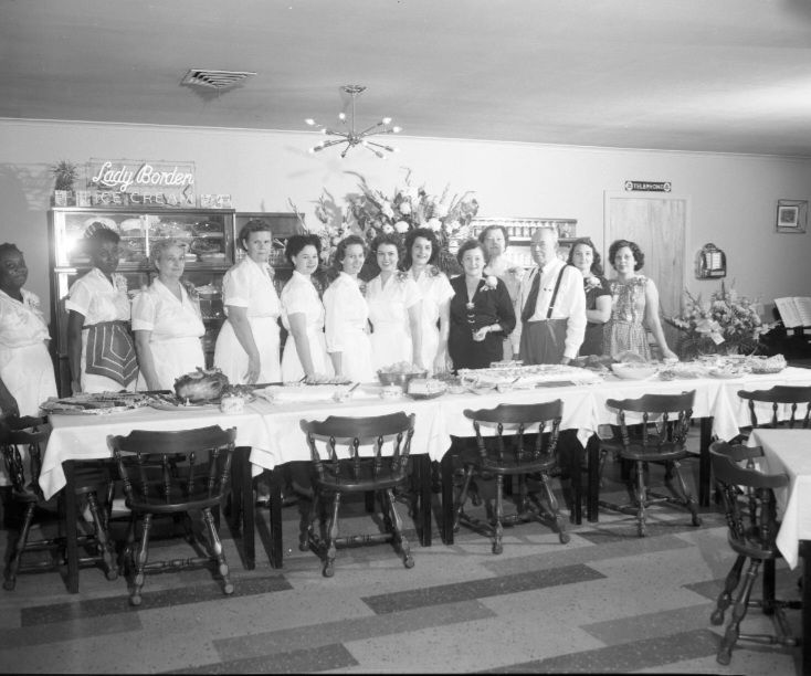 Aline Landrum was the waitress who served Elvis that morning. A woman named Dorothy Briscoe took two photos of Elvis; one outside and one inside the café dining in the Malarkey Room.