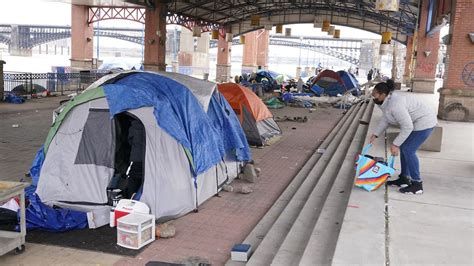 Approaching noon, under an overpass were scores of homeless, many obviously drunk or wiped out on drugs. Some lived in tents, others sprawled out on deteriorated asphalt and sidewalks.