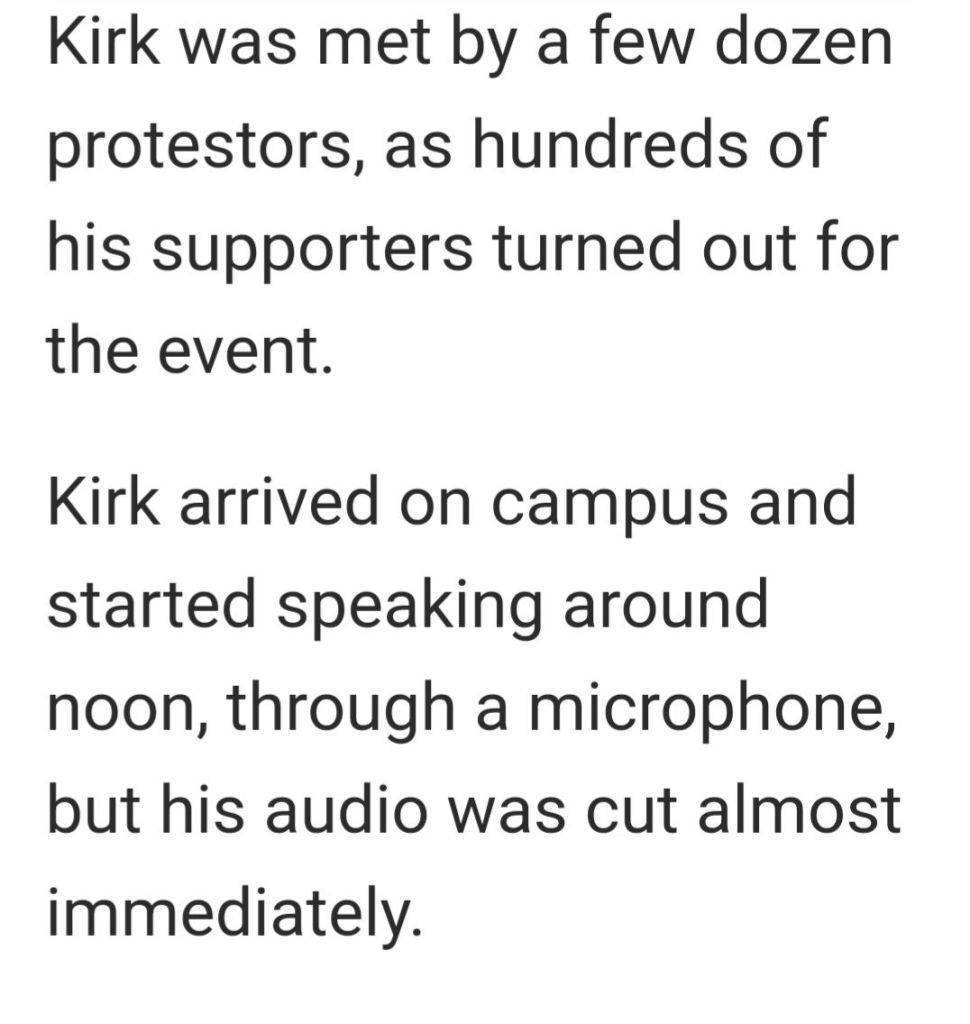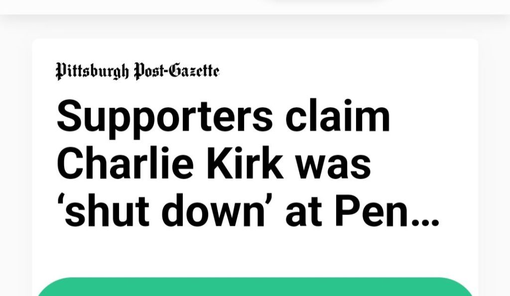 1. What a delicious contrast between the media’s pathetic attempts to carry on with the snow job, while the truth is on display. Have they never heard of Word of Mouth? We are by no means out of the woods yet, but we have our God, and the truth, and we are equipped to win this time, but only if we Don’t Back Down, and keep going, no matter the cloud of lies that surround and seek to discourage us. We don’t advertise for Hell; we expose it, like Charlie Kirk. The word is getting out. I’m seeing people in my own church, which was definitely asleep, waking up and getting passionate and involved, finally. We can’t be fatalistic spectators, feeling hopeless, anymore. There is too much at stake, and all the hope in Heaven and Earth.