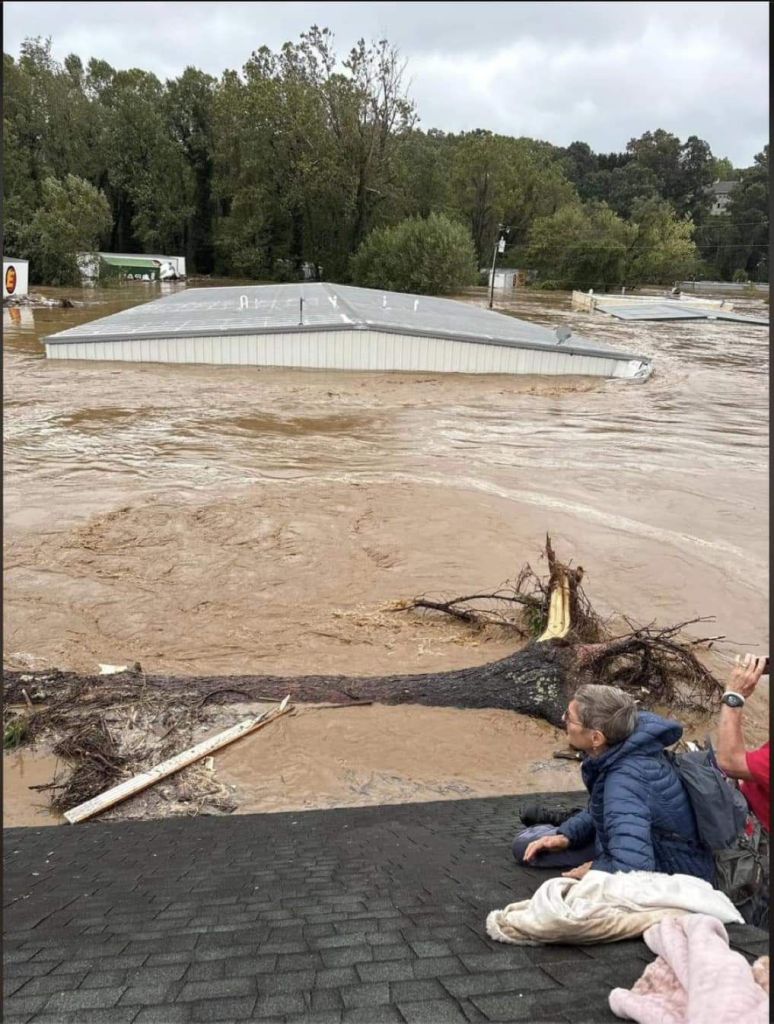 This is the last image of a wife and husband in Asheville, NC sheltering from the flood on a roof.