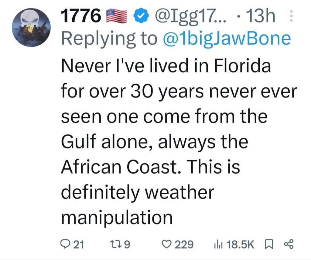 Hurricanes have hit Gulf Coast states every year since 2016, but a growing number of people believe there is something strange and peculiar about Hurricane Milton on it’s way to Florida from the opposite direction of history.