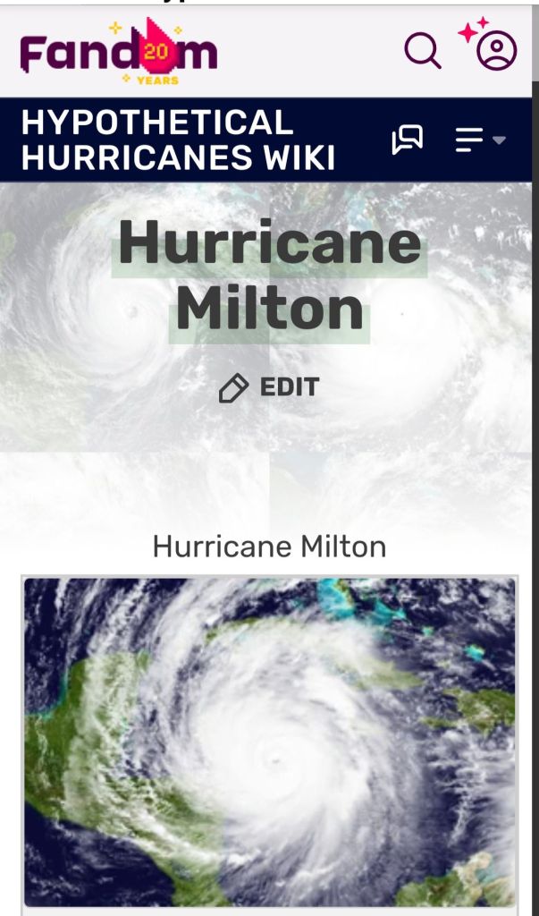 Ironically, an internet social media gaming site, known as Hypothetical Hurricanes Wiki, has a “Hurricane Milton” on their wiki-based comprehensive database.