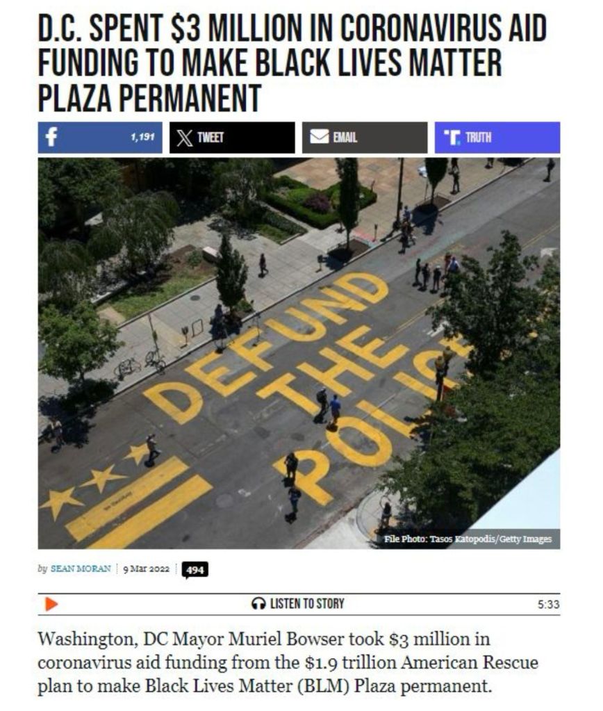 This $1.9 trillion spending bill prolonged supersized unemployment checks, gave “stimulus” checks for hundreds of millions, and provided grants to state and local governments which were used for non-COVID related projects.