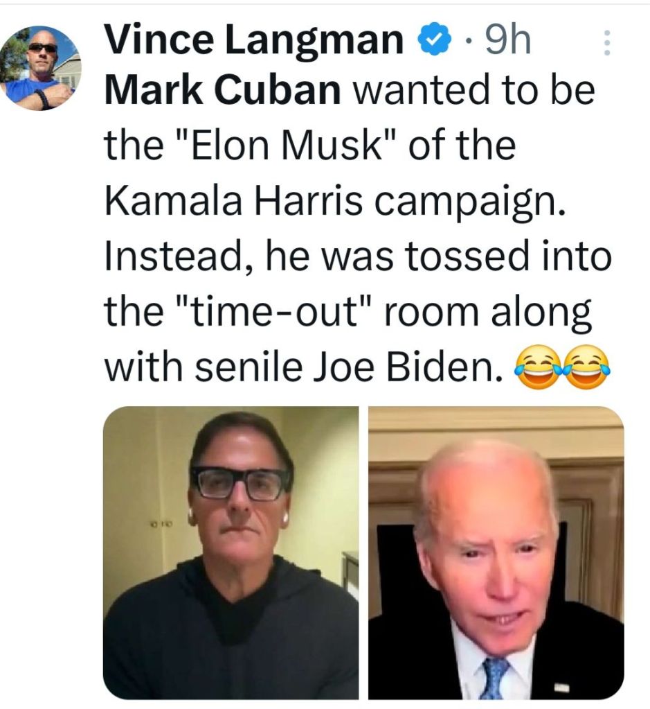 What does Mark Cuban’s comment say about his own intelligence in supporting Kamala? 😳