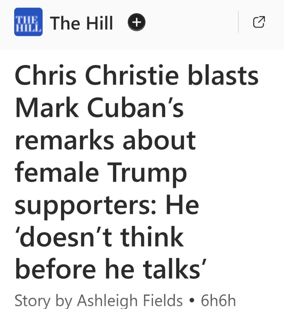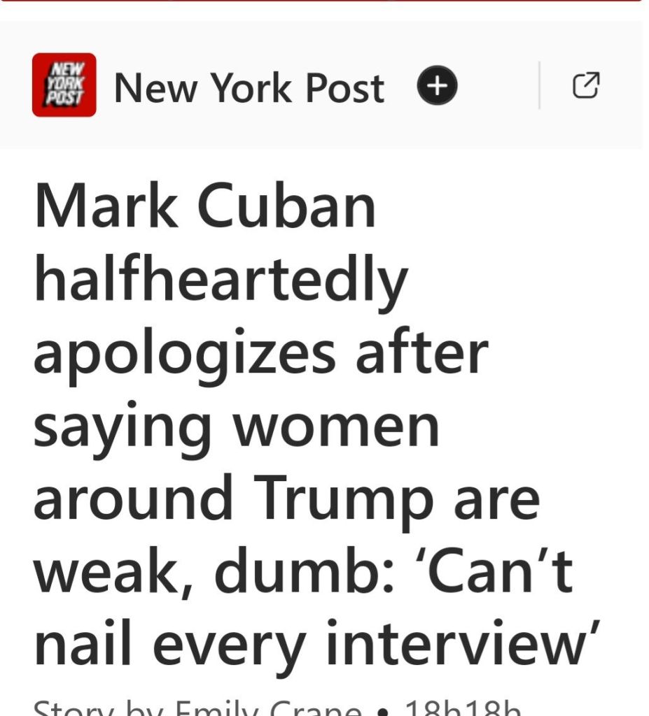 Mark Cuban is in this thing for himself. He himself is trying to control Harris. Remember: in 2016, he offered to be VP for both Clinton and Trump. He’s two-faced.
