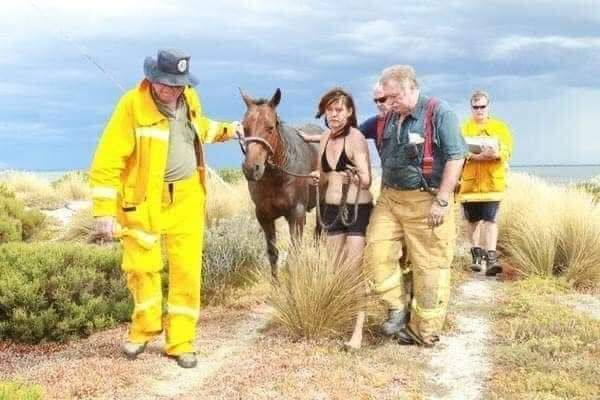 Graham refused to leave her horse abandoned and sentenced to certain death. Fighting against a rising tide, members of the fire department, emergency services, and a vet attempted to free the 1,100-pound horse.