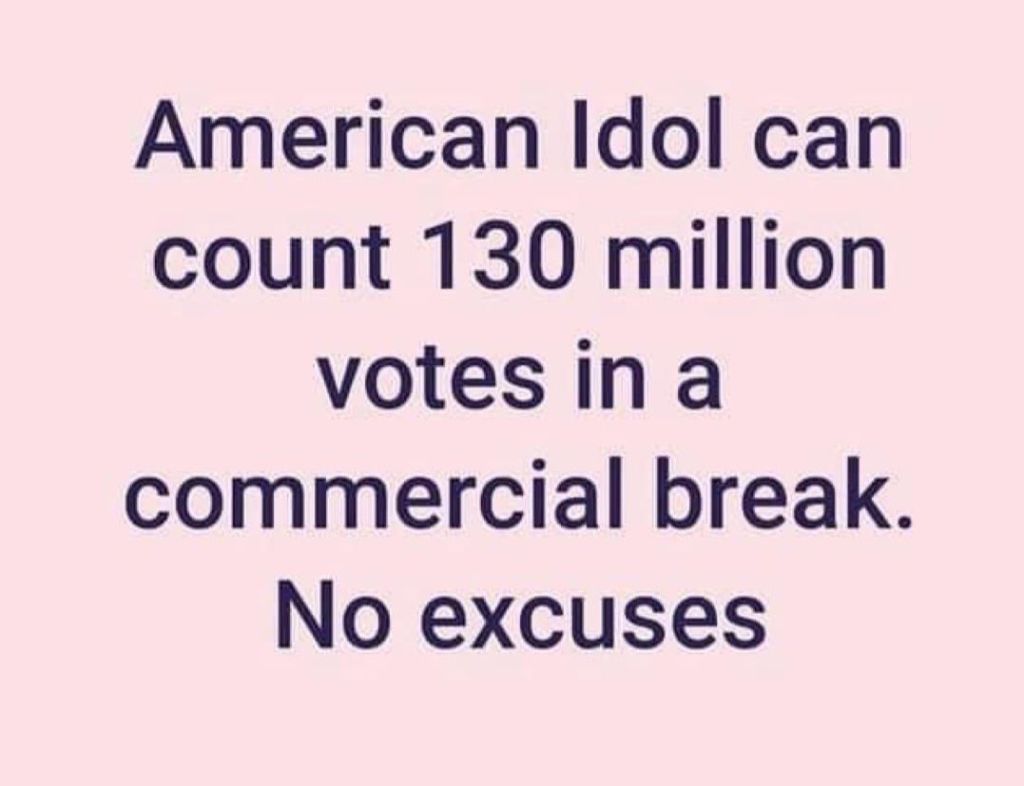 What’s with California, Arizona and Nevada? Are they using the pony express to deliver their votes? They are only a few time zone hours behind most of the country not a few days behind the rest of the country. Maybe they need some help from Florida and Texas. Even New York is a lot better than they are at counting votes. I know that Alaska has ranked choice voting but still. Are they using dog sleds or kayaks to deliver their votes?