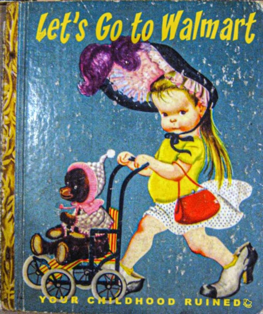 The little full-cheeked girl pushing the stroller on the cover of “Let’s Go to Walmart” actually resembles your sister as a child. Bobbi must have a well-nurtured backbone. My guess is she can give as well as she can take.