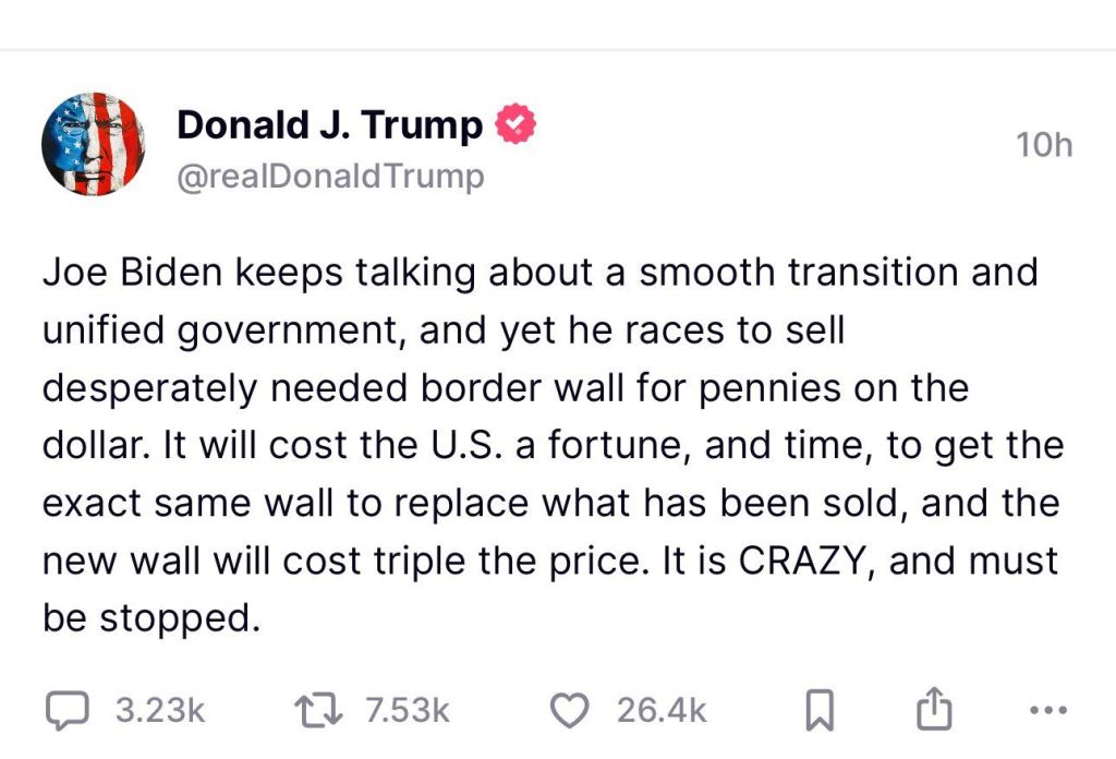 On Thursday evening, before this latest announced auction was scheduled to begin, Texas Lt. Gov. Dan Patrick announced that the Lone Star State will reclaim the unused segments of the wall via the auction of materials, some for as little as $5. Patrick intends to secure this material ahead of the incoming Trump administration.