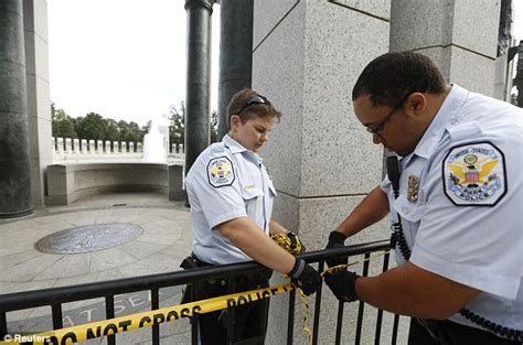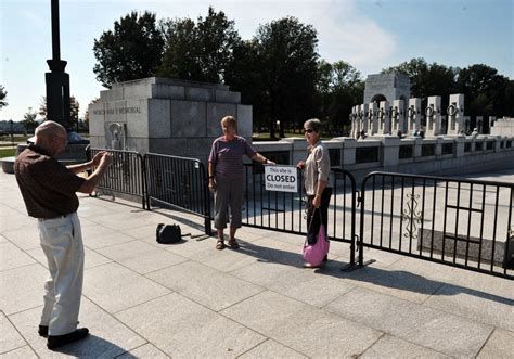 In response to signs indicating the memorial was closed, American military veterans, who had flown in from across the country to commemorate, pushed past makeshift gates and barricades to make their visit.