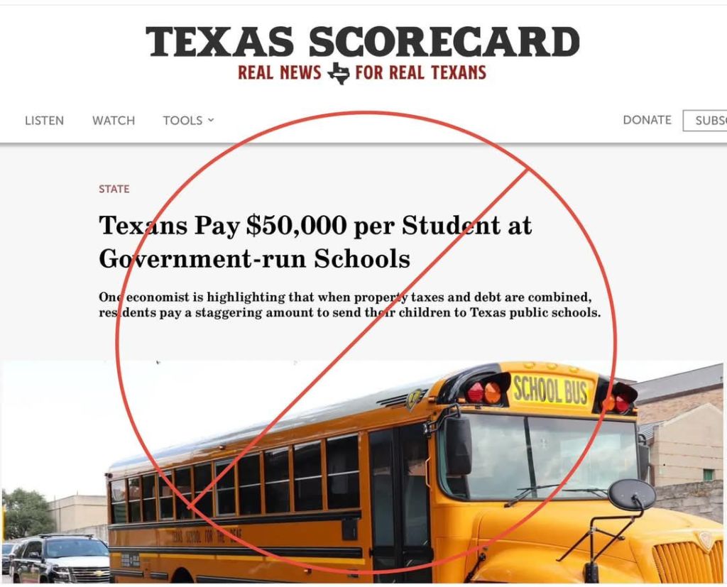 You may have differing opinions on Texas public schools, but at least use facts and not made up information.