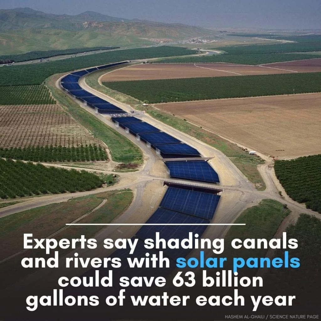 Researchers say shading canals and rivers with solar panels could save 63 billion gallons of water each year —and generate about 13 gigawatts of energy.