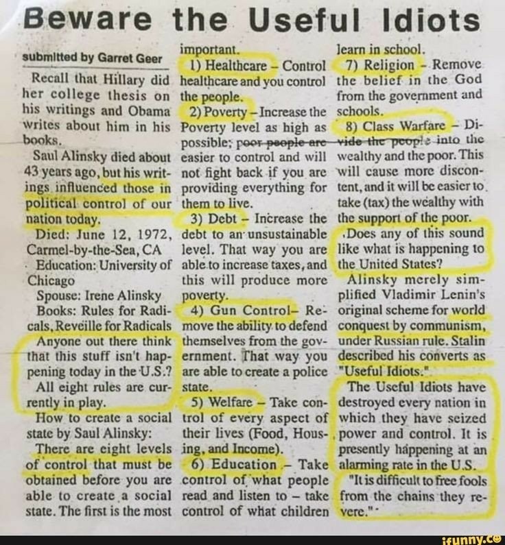 Hillary Clinton’s senior honors thesis was an analysis of the works of Saul Alinsky and the effect that they have on politics today. Barack Obama can also trace his roots to the teachings of Saul Alinsky.
