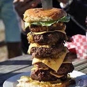 The flagship menu item, known as the Alamo Burger or the El Jefe Challenge, is a very tall  cheeseburger filled with 2.5 lbs. of ground beef equalling six large hamburger patties.