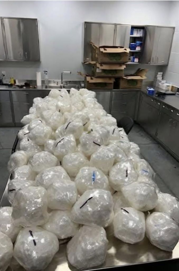 Update: Feb. 14, 2025. This is 344 pounds of Methamphetamine found Wednesday during a traffic stop, trafficked out of Colony Ridge in Texas. The three suspects are here illegally, and all had been deported on at least 4 other occasions. One was in possession of a firearm.