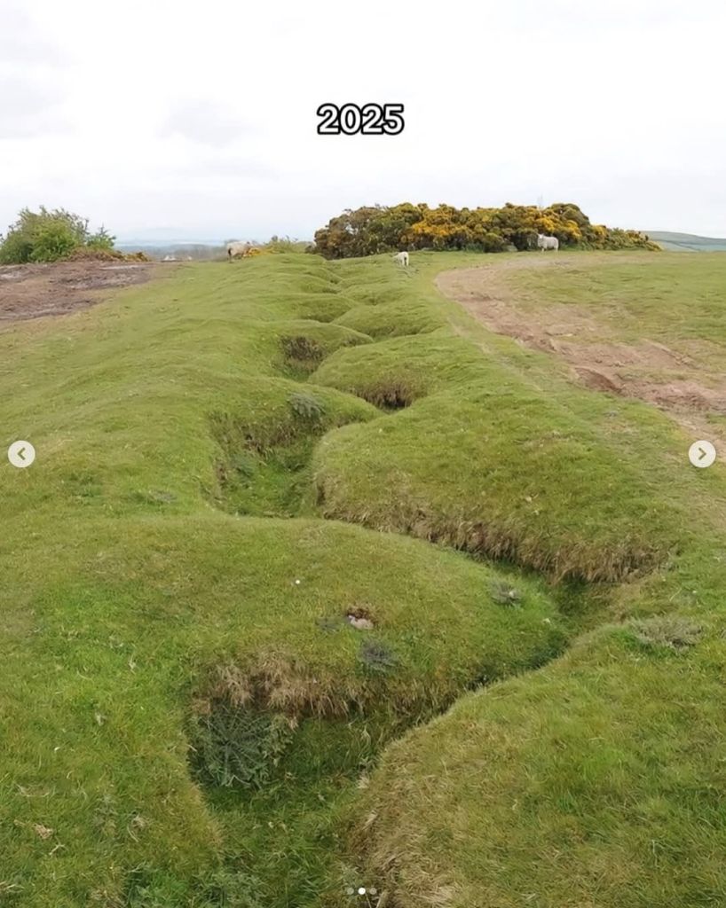 The trenches, once filled with soldiers fighting for survival, are now lined with grass and moss, creating an eerie contrast between past destruction and present tranquility. Though the war has faded into history, the land still holds silent echoes of the soldiers who once fought there.