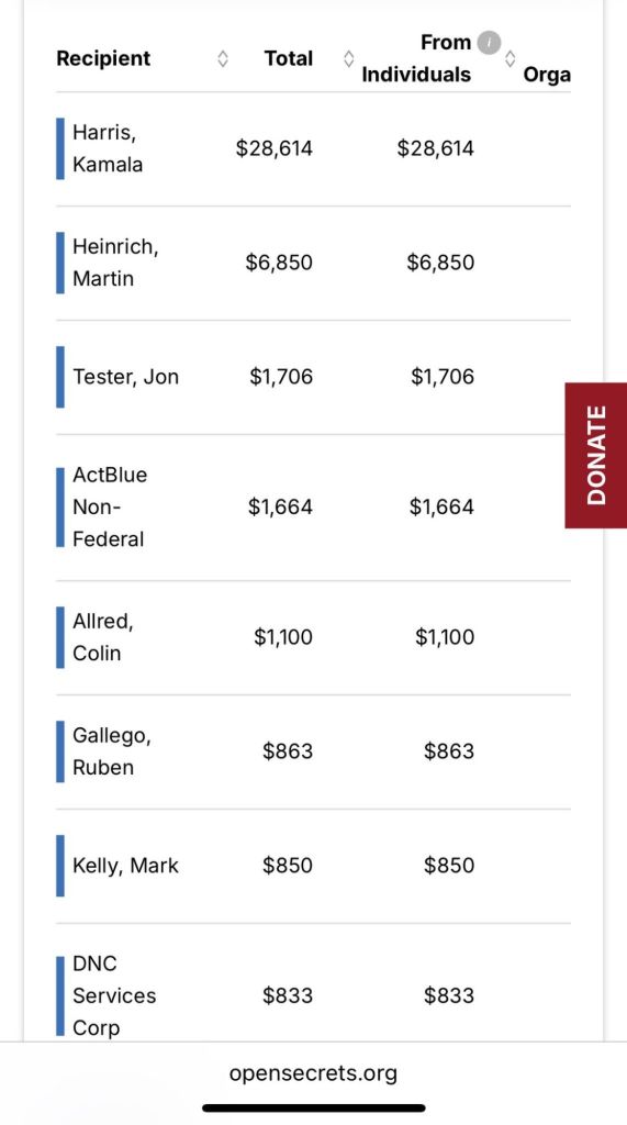 Even Walmart, which has had traditionally Republican leadership, had more donations for Harris than Trump.